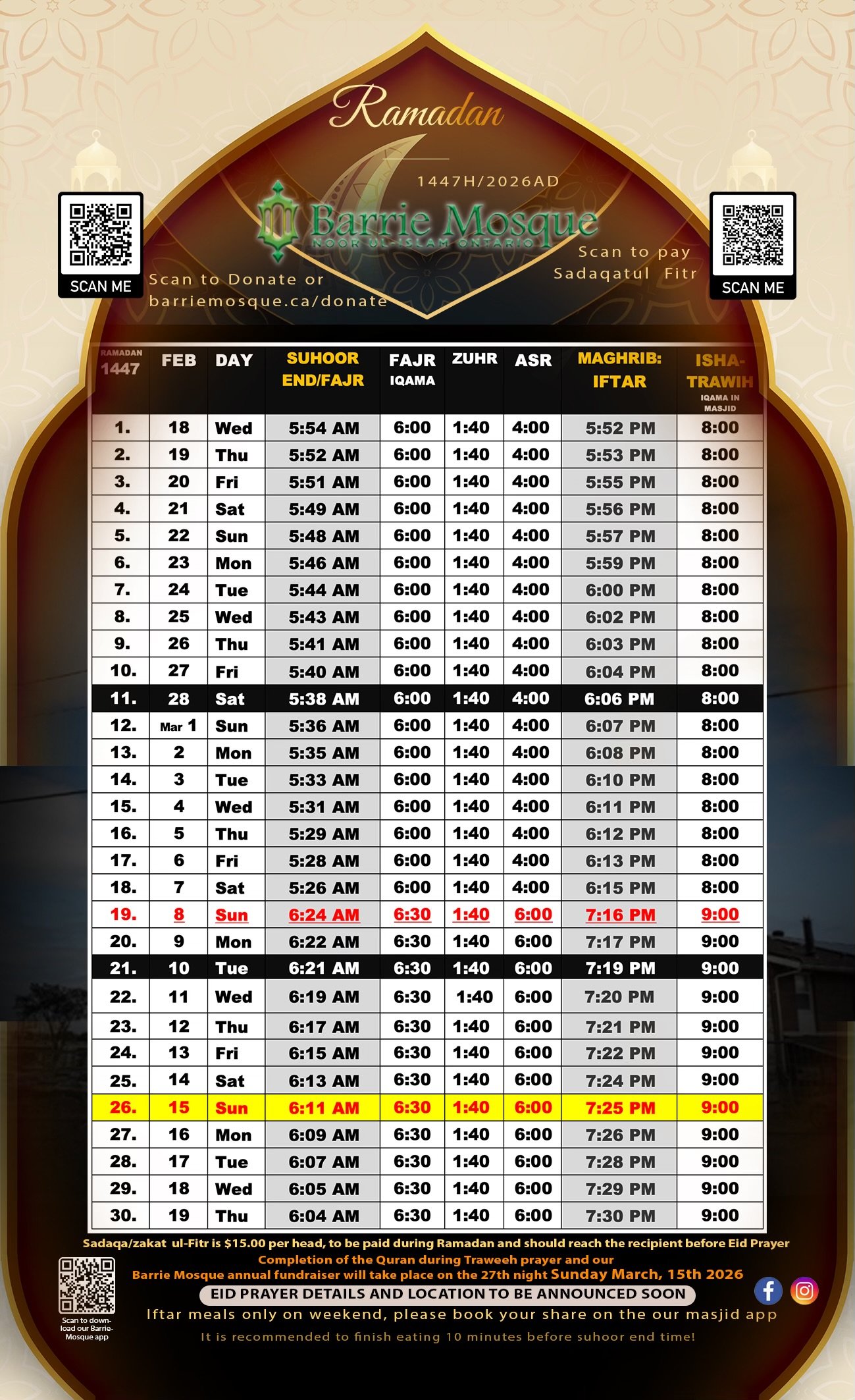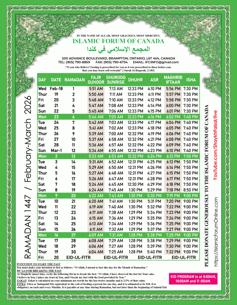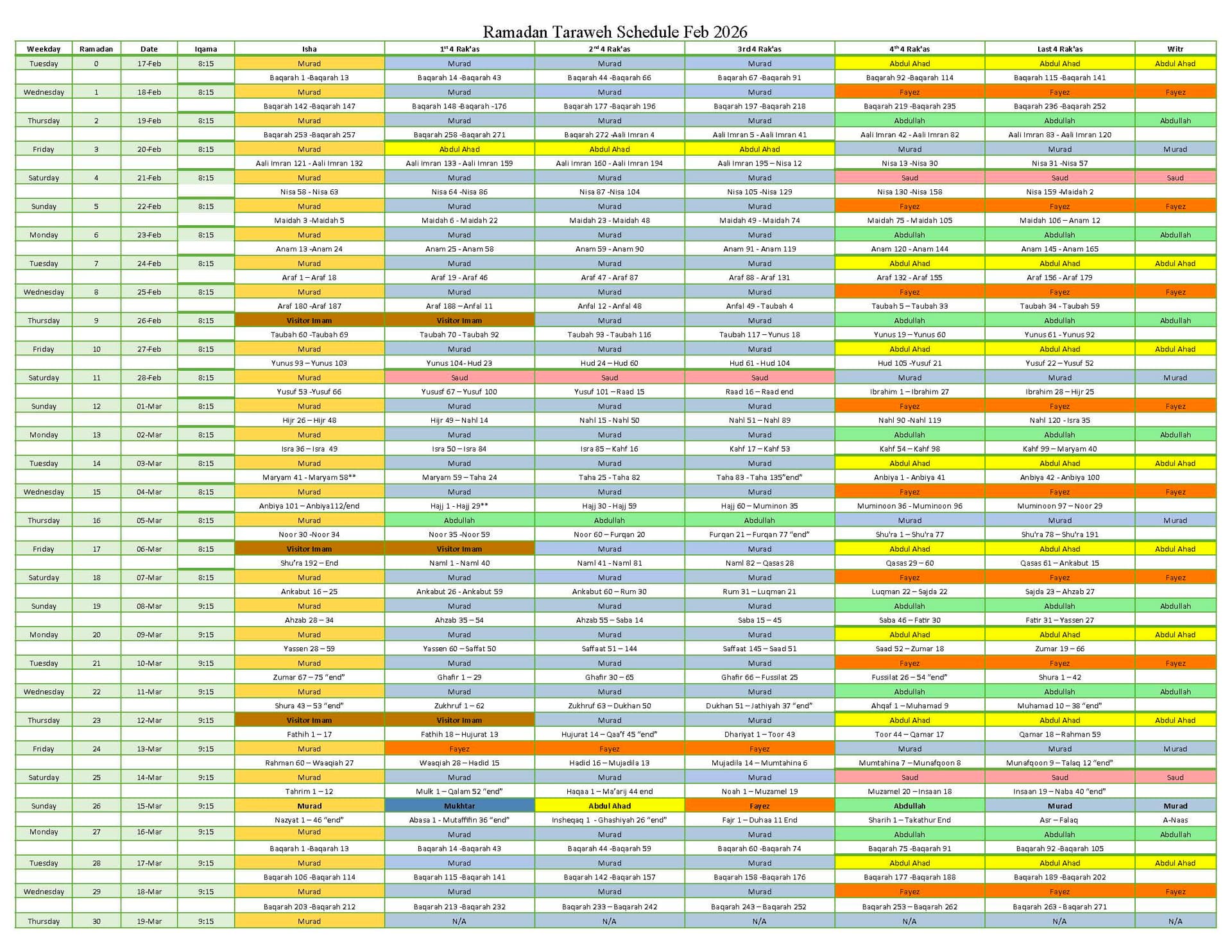 Taraweeh schedule